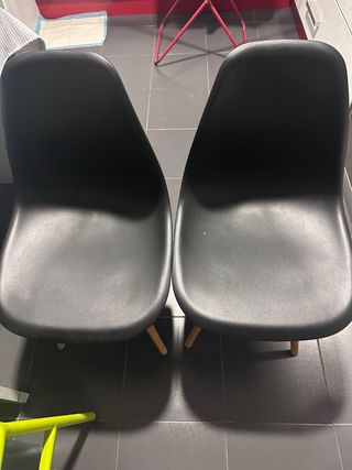 Sillas de diseño moderno con asiento tapizado y patas de madera. - Asiento ergonómico. - Patas de madera resistentes. 22 euros la cada una, las dos a 40 euros.