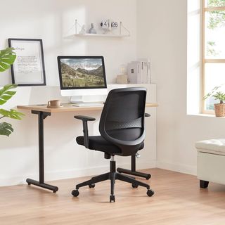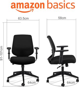 Silla de oficina con diseño ergonómico, ideal para tu espacio de trabajo. Silla de oficina ergonómica, silla de escritorio, reposabrazos ajustables, soporte lumbar, agradable en la espalda, silla ejecutiva de malla, fácil montaje, 63,5 x 58,4 x 91,4 cm, Negro - Respaldo de malla transpirable. - Asiento acolchado. - Base con ruedas para fácil movilidad.