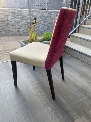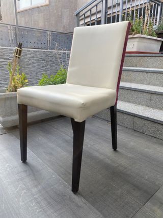 Vendo Sillas Resistentes y recien tapizadas, con menos de 1 año de uso. tengo un máximo de 60 sillas y se negocia precio dependiendo de las unidades compradas. - Patas de madera oscura. - Tapizado en color vino burdeos en la parte trasera del respaldo. - Asiento y respaldo en color beige.