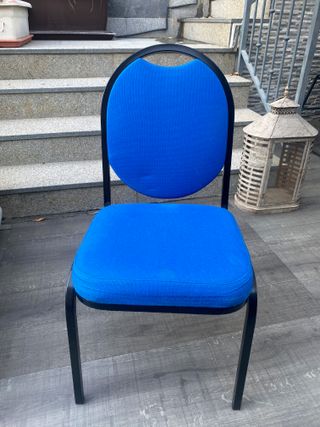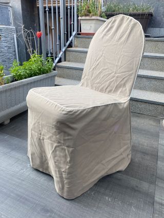 Silla de congresos apilable, con estructura de acero y asiento de tela. Viene con una funda beige. - Diseño elegante y funcional. - Funda con ribete blanco.