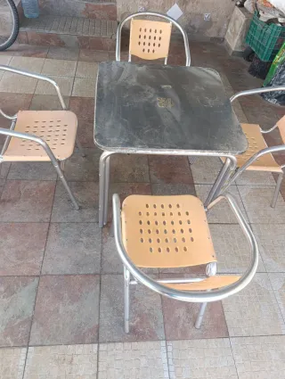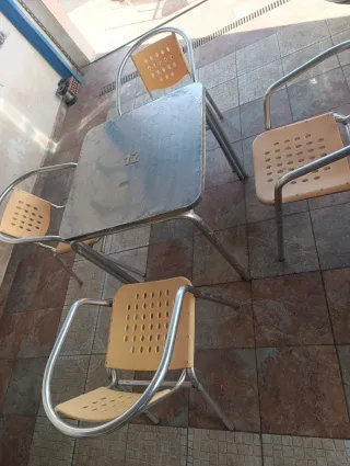 LOTE MESA Y 4 SILLAS METÁLICAS