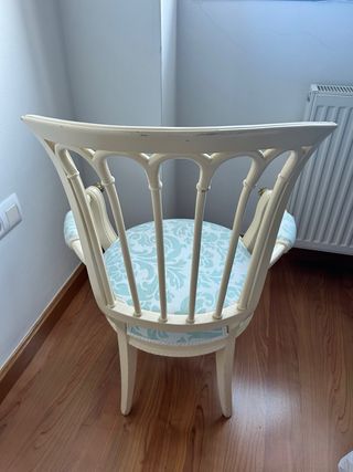 Silla de estilo vintage, con un diseño clásico y elegante. - Fabricada en madera maciza. - Patas robustas y estables. - Color beige - blanco roto