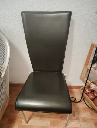 Conjunto de cuatro sillas con un diseño moderno y elegante. - Asiento de plástico resistente. - Patas metálicas plateadas. - Se limpian con un paño, muy fáciles de limpiar. Una de las sillas le falta el tapón/protector de abajo. Mirad la última foto.
