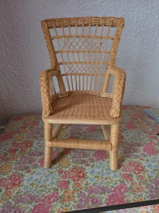 Pequeña silla decorativa de mimbre, perfecta para añadir un toque rústico a cualquier espacio. - Altura: 31 cm - Ancho: 15 cm