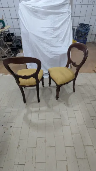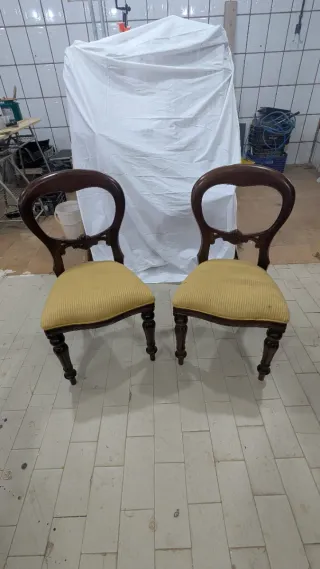 Se vende conjunto de 6 sillas de comedor, por 45€. Son de estructura de madera color cerezo y asiento de tela. Ideales para tapizar a tu gusto. Buen estado. Se venden con fundas diseño mandala de regalo. - Estructura de madera. - Asiento de tela.