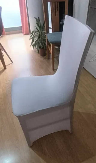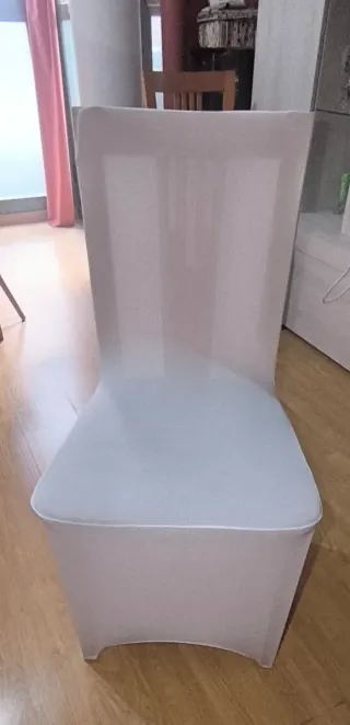Funda elástica para silla en color blanco. Dale un nuevo aspecto a tus sillas de forma rápida y sencilla. -Disponibles 5 packs de 10 unid - Material: poliéster y tela.