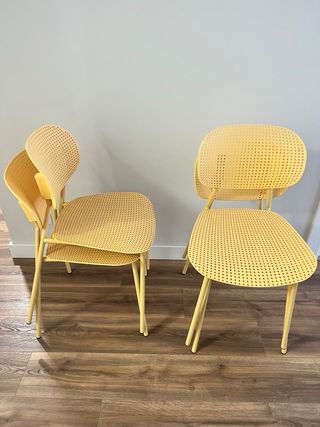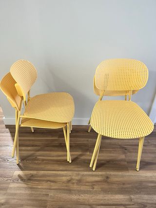 Conjunto de cuatro sillas SKLUM modernas con un diseño perforado. - Estructura de metal y plástico. - Color amarillo vibrante. No envio 80€ las 4 sillas no se venden por separado