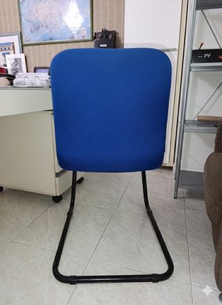 Silla de oficina con un diseño moderno y funcional. - Estructura metálica resistente. - Tapicería de tela en color azul.
