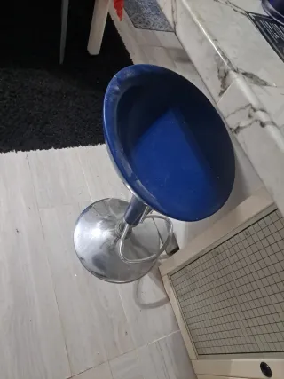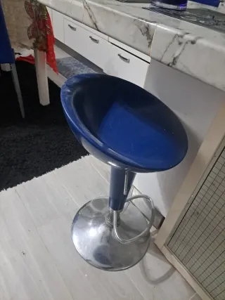 Silla de barra con un diseño moderno y elegante. - Asiento de plástico. - Base y pie de metal.