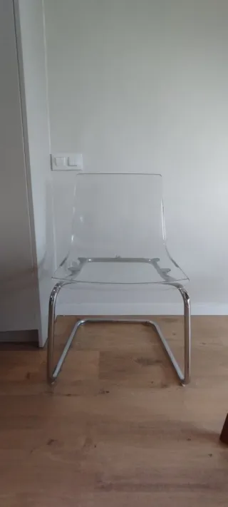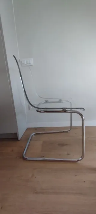 Conjunto de sillas transparentes de IKEA con estructura metálica. - Diseño moderno y minimalista. - Materiales resistentes y duraderos.