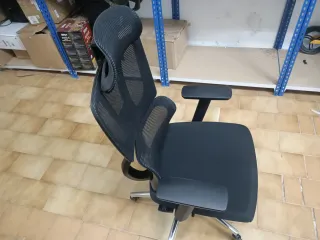 Silla de oficina con diseño ergonómico y reposacabezas. - Respaldo y asiento acolchados. - Brazos ajustables. - Base con ruedas para fácil movilidad. Cómo nueva