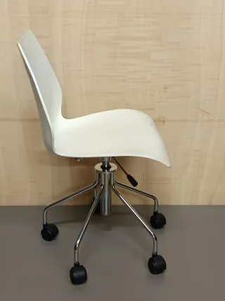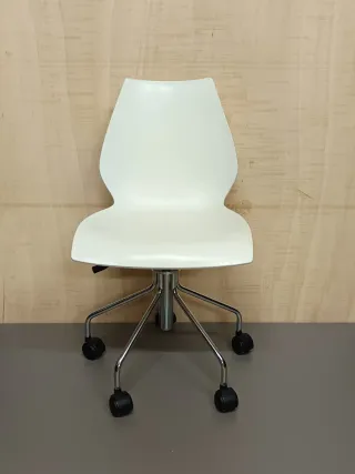 Silla de diseño icónico Kartell Maui, diseñada por Vico Magistretti, con ruedas y regulable en altura de 46cm a 56cm, con marcas de uso