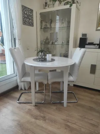 Mesa extensible + 4 sillas blancas