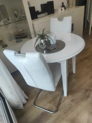 💥OFERTON DE MESA REDONDA + 4 SILLAS💥 Transforma tu espacio con Elegancia y modernidad se unen en esta mesa de comedor de cristal templado y patas cruzadas, creando un diseño que se destaca en cualquier ambiente. Su cristal templado resistente ofrece durabilidad y estilo. La parte superior de cristal templado ofrece una superficie brillante y duradera, proporcionando un aspecto sofisticado y contemporáneo. Medidas: * 120x120x75cm - Envío a domicilio (consulte tarifas) - Pago contra reembolso - Garantía de 3 años 💥!NO ESPERES MAS PARA TENER TU NUEVO COMEDOR/MESA + 4 SILLAS EN TU HOGAR /SALON!💥 📲670222602📲 JHON!