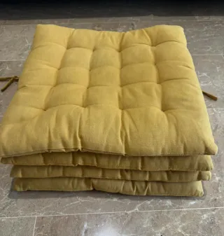 Conjunto comedor - mesa con 4 sillas de madera maciza y cojines a juego. Precio inicial ~600€. Conservada en muy buen estado. Tienda Bonart de Cornellá, mobiliario gama alta. - Mesa de diseño - Medida 1.60m x 1m x 0.70m de alto - Diseño moderno y robusto. - Madera de wengué Precio negociable.