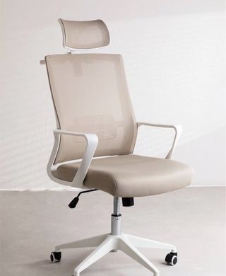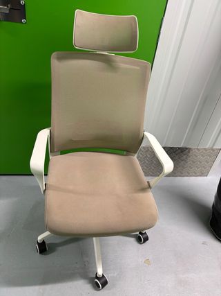 Vendo silla de oficina ergonómica SKLUM, en color beige con estructura blanca. Muy cómoda, moderna y en muy buen estado. ✨ Respaldo de malla transpirable ✨ Reposacabezas regulable ✨ Altura regulable ✨ Brazos integrados ✨ Base con ruedas (giro 360º) ✨ Ideal para teletrabajo, estudio u oficina