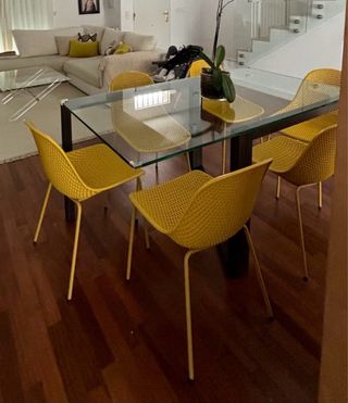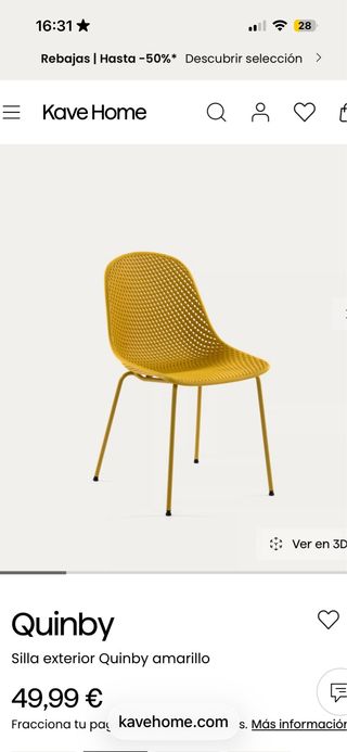 Silla modelo Quinby de Kave Home.( 49,90€ cada una en tienda) - Diseño moderno y perforado. - Patas metálicas resistentes. En muy buen estado con alguna señal de uso.