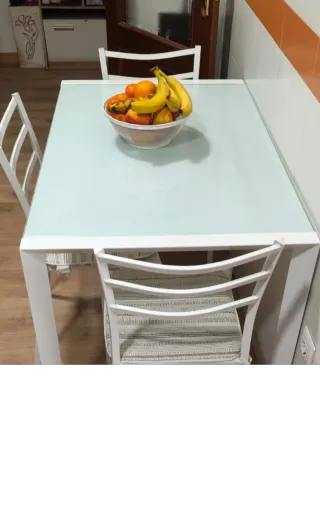 Mesa comedor + 4 sillas blancas