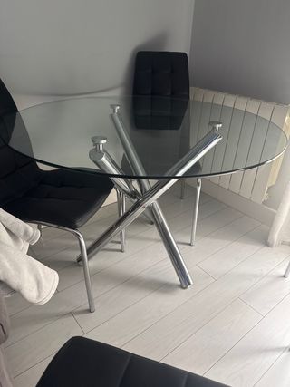 Mesa de comedor redonda cristal y metal