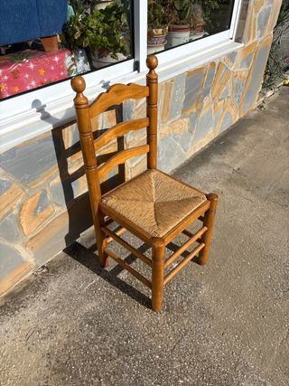 Conjunto de sillas de madera, perfectas para comedor o cocina. Disponibles varias unidades. - Diseño clásico y robusto. - Acabado natural de la madera.