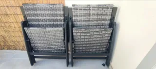 Conjunto de dos sillas plegables Tectake, con un diseño moderno y elegante para terraza o jardín de ratán color gris. Estructura de aluminio y trenzado de ratán. Varias posiciones de respaldo. Se venden las dos juntas. Medidas y características en foto.
