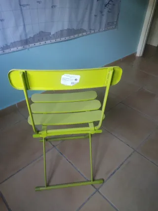 Conjunto de sillas plegables con estructura de madera y asiento y respaldo de tela. Las vendo porque despues de tapizarlas...ya no van a juego con el resto de muebles y para tenerlas plegadas sin uso... - Diseño clásico y funcional. - Perfectas para espacios exteriores.