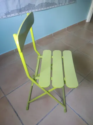 Silla plegable de metal, ideal para exteriores. - Diseño moderno y funcional. - Fácil de guardar y transportar.