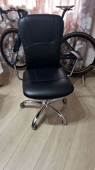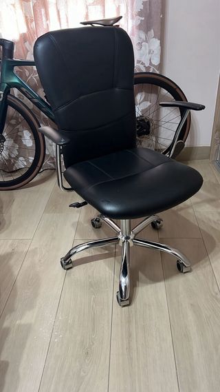 Silla de escritorio regulable en altura y con ruedas, en buen estado. Cómoda y funcional para estudiar o trabajar. Presenta ligeros arañazos del uso normal, solo estéticos. Todo funciona correctamente. Precio negociable