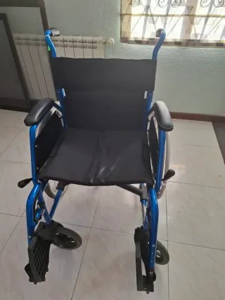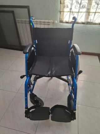 Silla ruedas prácticamente nueva, apenas se ha usado,las medidas son,66cm de rueda a rueda, Asiento 47 cm Alto 95