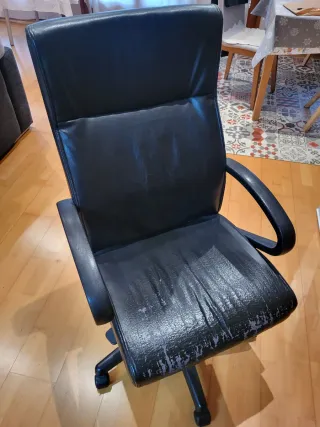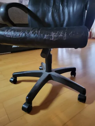 Silla de oficina. Precio de las dos sillas Están muy desgastadas pero son utilizables, una de ella está inclinada el respaldo pero se puede arreglar. - Base metálica con ruedas. - Reposabrazos. - Mecanismo de ajuste de altura.