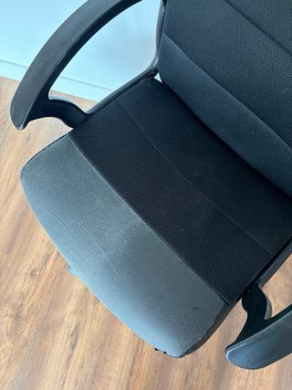 Silla de oficina con un diseño moderno y funcional. Les falta un lavado de la tapiceria (tiene manchas). - Tapicería de tela. - Base y brazos de plástico.