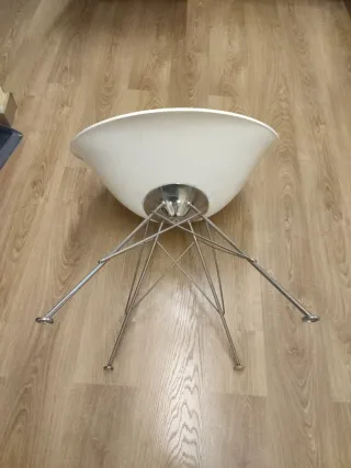 Icónica silla Eros diseñada por Philippe Starck para Kartell. Su diseño orgánico y futurista la convierte en una pieza de mobiliario destacada. - Asiento ergonómico. - Base de tres patas metálicas.