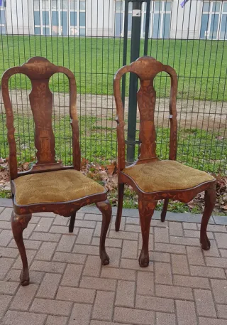 Pareja Sillas Isabelinas Marquetería Bowman Brothe