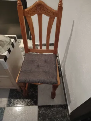 Seis sillas de pino con cojín