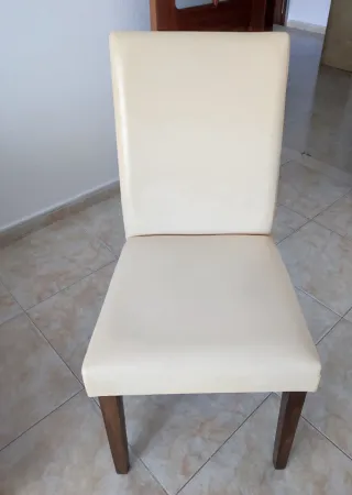 Sillas de madera tapizada beige. Son 6 a 50€