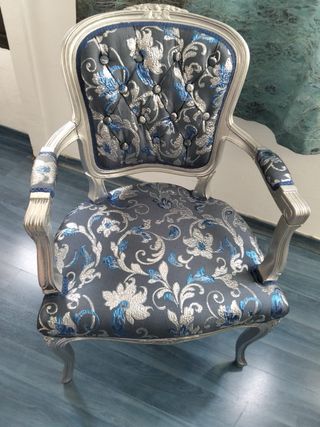 Silla Vintage Tapizada Azul y Plata