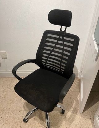 Silla de escritorio con diseño ergonómico y reposacabezas. - Respaldo de malla transpirable. - Asiento acolchado. - Base con ruedas para fácil movilidad.