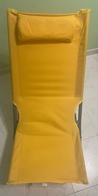 Silla de playa ultraligera, fácil de transportar y muy cómoda. - Estructura metálica. - Asiento y respaldo de tela lavable. - Incluye cojín para la cabeza.