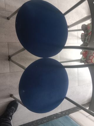 Conjunto de cuatro sillas con estructura metálica y asiento tapizado. - Asientos redondos. - Diseño moderno y funcional. Rebajado el precio por hoy por 30 euros las 4 sillas admito bizum.
