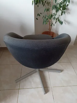 Silla giratoria de diseño moderno, ideal para cualquier espacio. - Base metálica. y sin ruedas. - Tapizado en tela negra desgastado por el sol. Lo único malo es que el color del tapizado está desgastado por el sol, por lo demás está perfecta, URGE VENDER, por eso la dejo a menos de la mitad del precio de compra. Precio nueva 139€ Medidas en la última imagen.