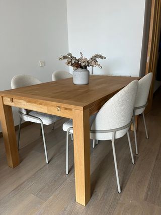 ☎️ 680*558*196 🍽️ Mesa de Comedor Blanca de Cristal + 4 Sillas – NUEVA Vendo mesa de comedor nueva con 4 sillas blancas a juego, de diseño moderno y elegante. Mesa con tablero de cristal templado y estructura blanca, ideal para cocinas y comedores actuales. Las sillas tapizadas en color blanco aportan comodidad y estilo, fáciles de limpiar y perfectas para el uso diario. C 📏 Medidas mesa: • Largo: 110 cm • Ancho: 70 cm • Alto: 74 cm 📏 Medidas sillas: • Alto: 95,5 cm • Ancho: 40 cm • Profundidad: 40 cm ✨ Características destacadas: ✔️ Producto NUEVO ✔️ Mesa de cristal templado