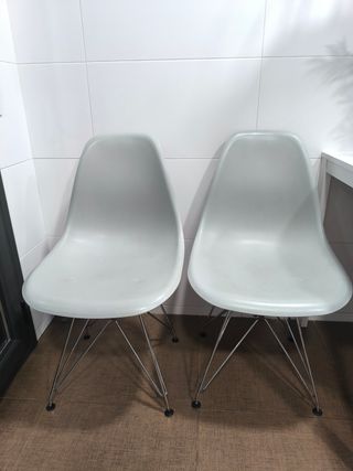 Conjunto de dos sillas blancas, muy cómodas y con un diseño moderno. - Estructura de metal y plástico. - Asiento acolchado para mayor confort. 80 euros las 4 sillas