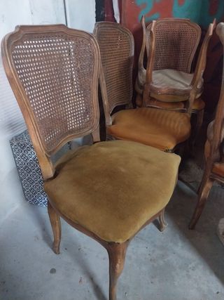 Tengo varios juegos de sillas antiguas para restaurar. Si estás buscando unas sillas para tu mesa o un juego de mesa con sillas para el comedor, pongate en contacto conmigo, vendo muebles restaurados y restauro a gusto del cliente. Mira en mi perfil, tengo mesas ya restauradas para hacer conjunto. mesas con sillas, sillas antiguas, deco vintage, salon comedor, sillas isabelinas