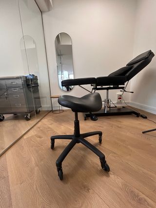 Se la doy al primero que pueda venir a recogerla, no reservo. Recogida en el plantío, aravaca. Silla de oficina giratoria en color negro. Cuenta con una base de cinco patas y ruedas para facilitar su movilidad. - Respaldo ergonómico. - Asiento acolchado. - Altura ajustable.