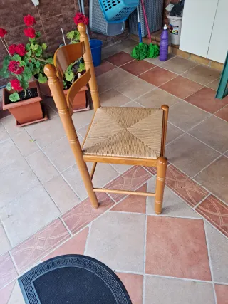 Conjunto de sillas con estructura de madera y asiento de nea. - Diseño rústico y natural. - Asiento tejido a mano.