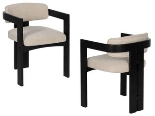 Elegante silla con brazos, combinando la calidez de la madera natural con un tapizado en tela beige. Nueva y sin usar en embalage original. Recogida en Marbella o portes aparte. - Diseño moderno y confortable. - Patas de madera maciza.