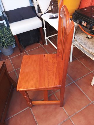 Conjunto de 6 sillas de comedor con un diseño elegante y confortable. 30e unidad. No envio. - Estructura de madera resistente. Mesa comedor a juego en venta, mueble tv a juego, mueble aparador a juego,mesa baja.. Madera maciza, todo conjunto 500e. Sofa 150e, 3+2. - Tapicería suave en tono beige.