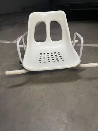 Silla diseñada para facilitar el acceso a la bañera. Su diseño giratorio permite una mayor comodidad. - Asiento con orificios para el drenaje del agua. - Base estable con patas antideslizantes.