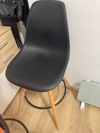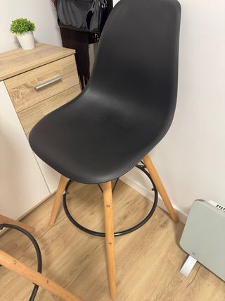 Conjunto de sillas de barra con un diseño moderno y elegante. - Asiento de plástico negro. - Patas de madera natural. Una silla 20e dos 35e