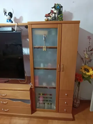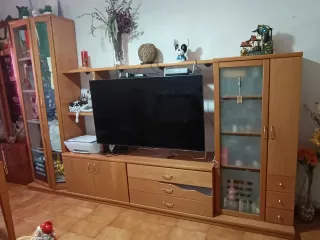 Mueble de salón completo en madera natural. Ideal para organizar tu espacio. Mesa de comedor extensible con 5 sillas en perfecto estado. - Diseño moderno y funcional. - Acabado en madera clara. - Amplio espacio de almacenamiento. Medidas mueble de comedor Largo: 316 cm Altura: 216 cm Profundidad: 47 cm ------------------------------------------------------ Medidas de la Mesa Largo: 120 cm/ desplegada 240 cm. Ancho: 90 cm Altura: 76 cm Pregunte que no molesta! WhatsApp ✅: 695817601